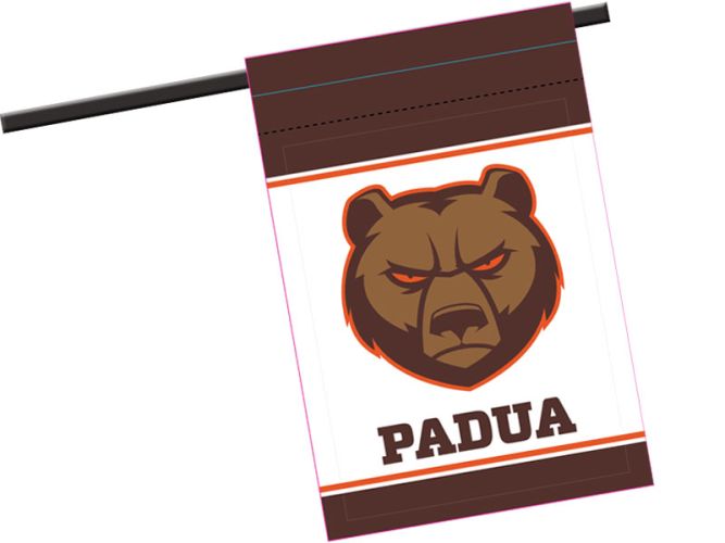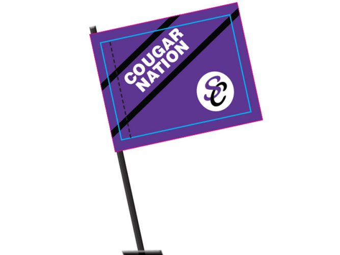 A free, custom design is included in the price of your Flags & Cheer Products,. Our Project Management Team will help you choose the best materials for your situation and space, then work with our Art Team to create an innovative design using your mascot, colors and information.