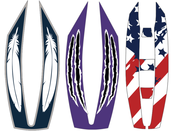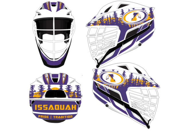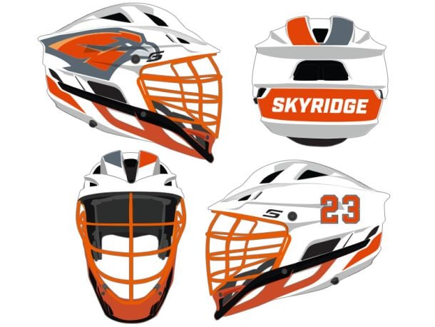 Our Team will create a cohesive design for your lacrosse helmets: lacrosse helmet wraps, oversized side decals, stripes and more.